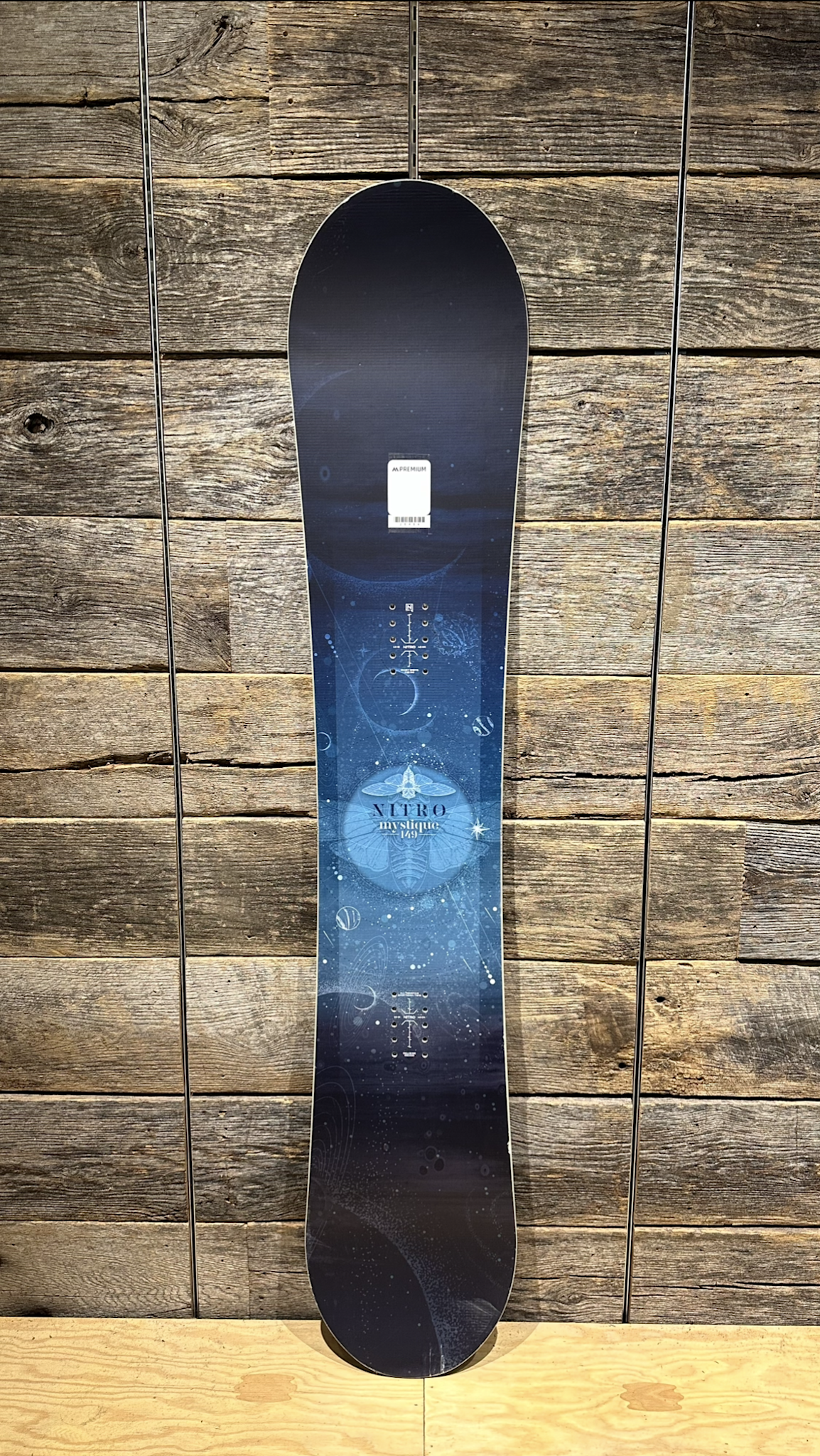 The Nitro Mystique Snowboard comes from the rental fleet at Premium Mountain Rentals in Whistler and was used for just one season.