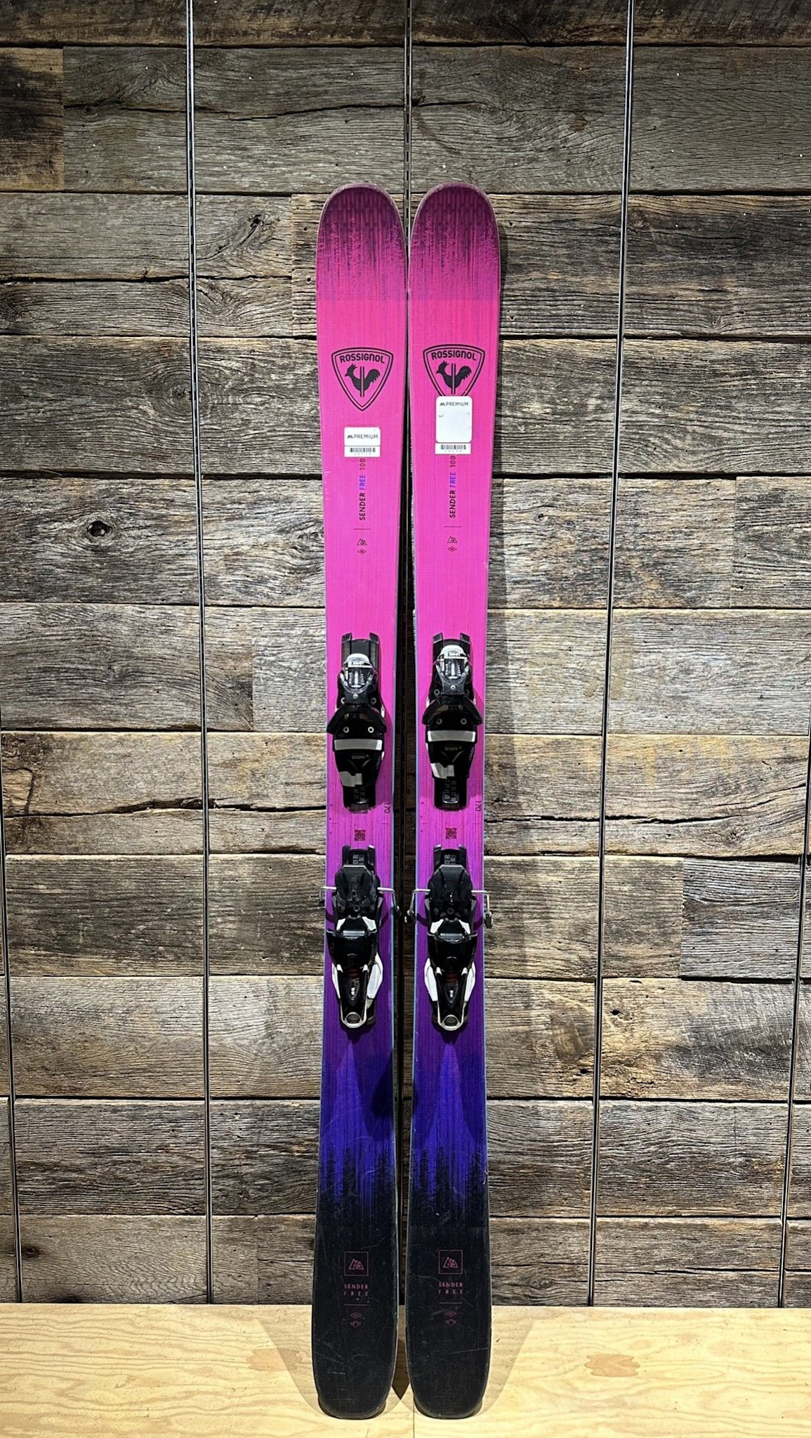 This Rossignol Sender Free 100 comes from the rental fleet at Premium Mountain Rentals in Whistler and was used for just one season. The skis are mounted with Look SPX 12 KONECT (B100) bindings, which are fully adjustable to fit most adult boot sizes, making setup easy with no remount required.